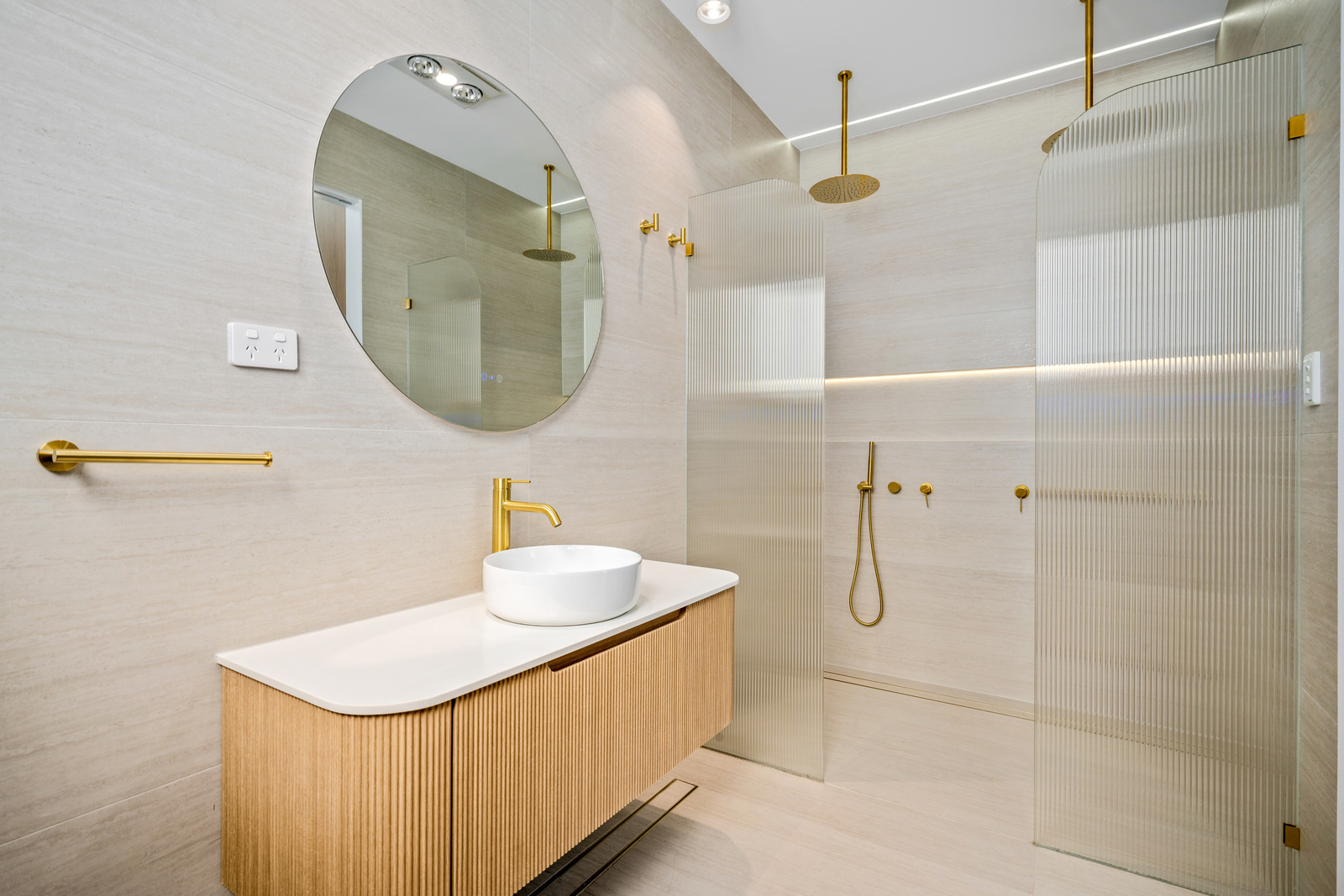* Sun-drenched resort-style swimming pool with oak timber decking, alfresco dining, outdoor shower , and built-in BBQ area