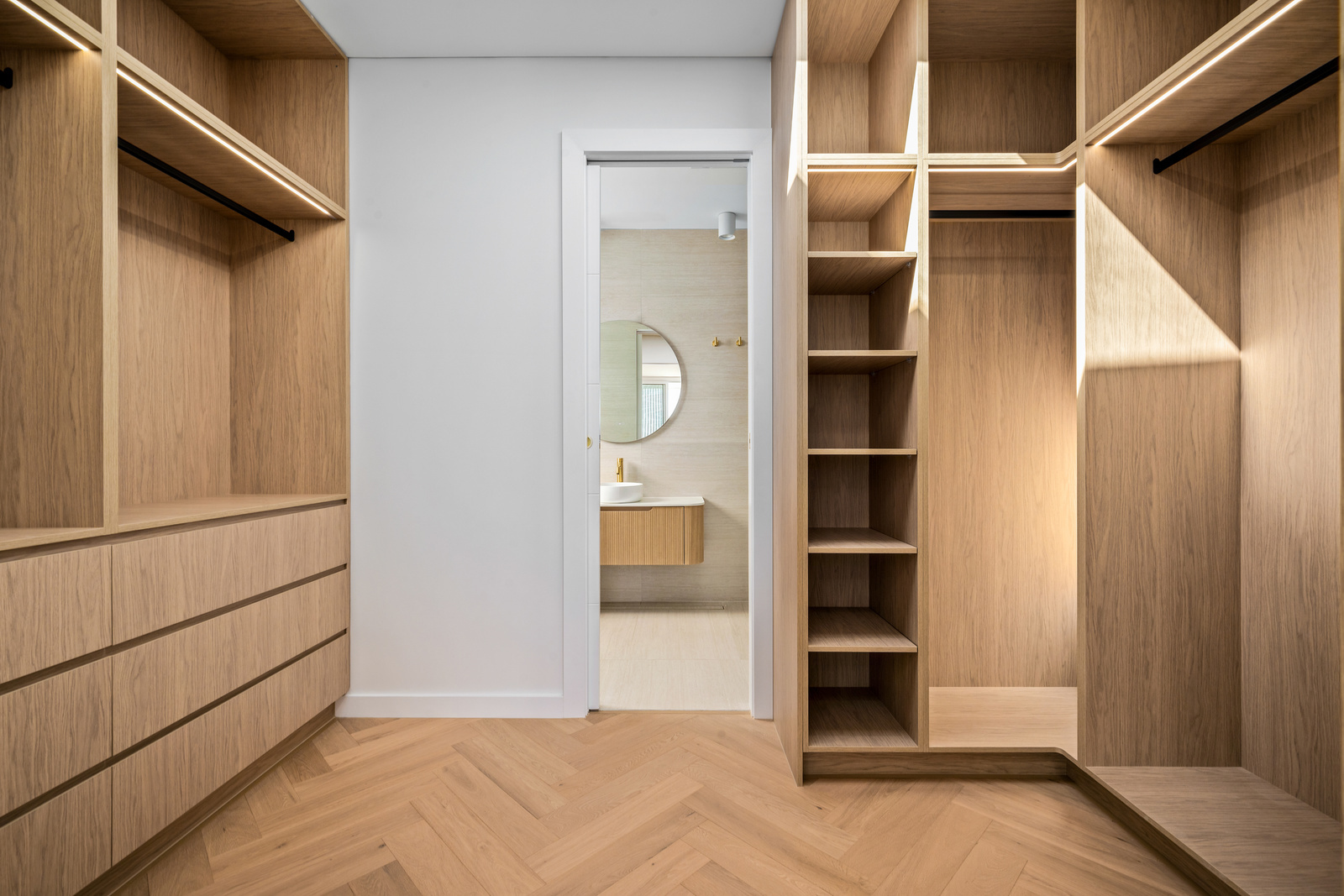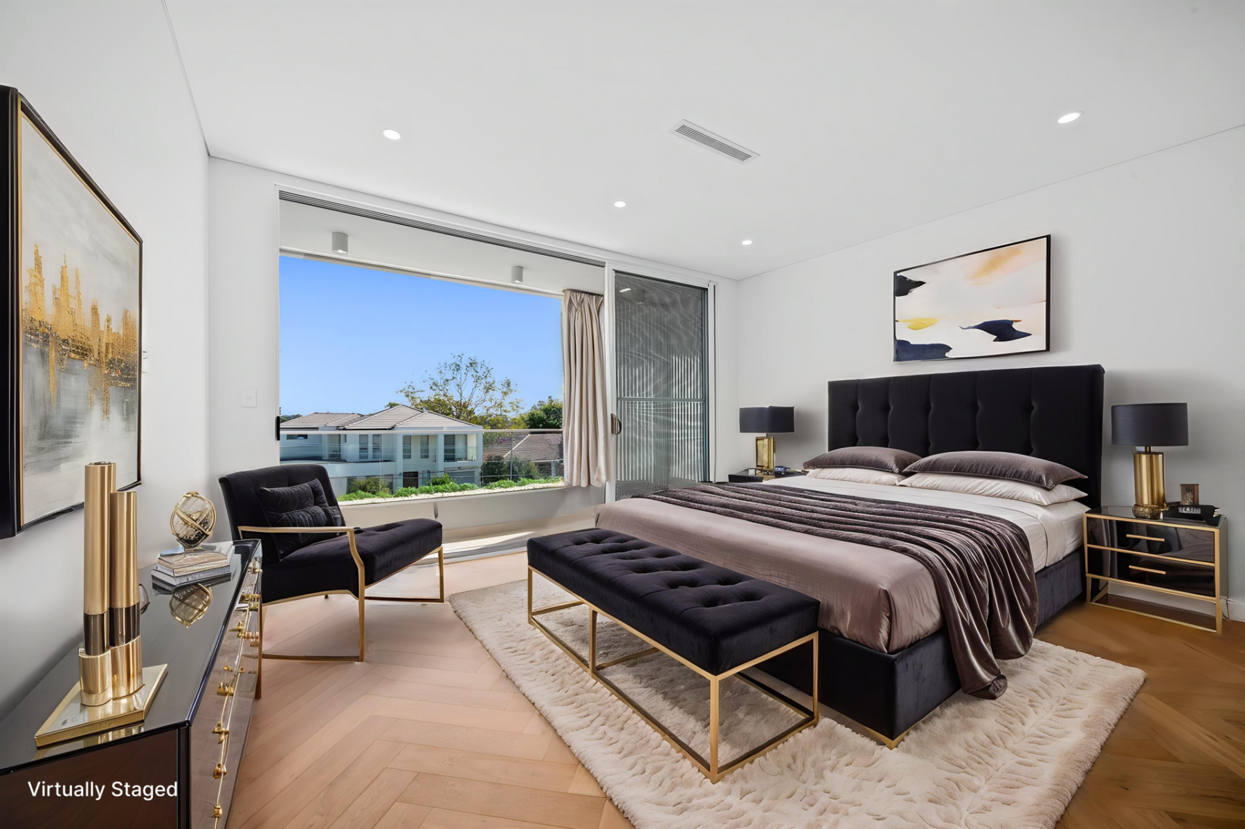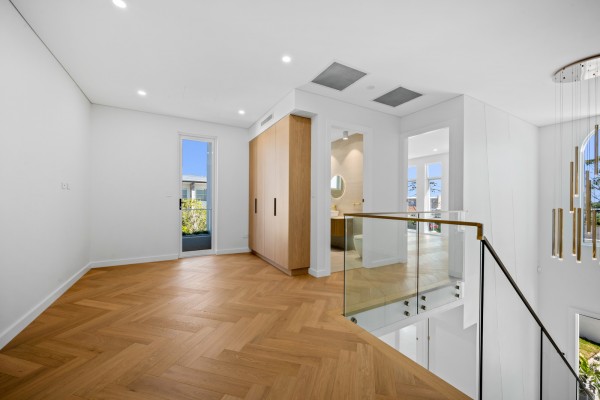 * Upstairs - Four generously sized bedrooms with herringbone flooring, bespoke joinery, and architectural detailing