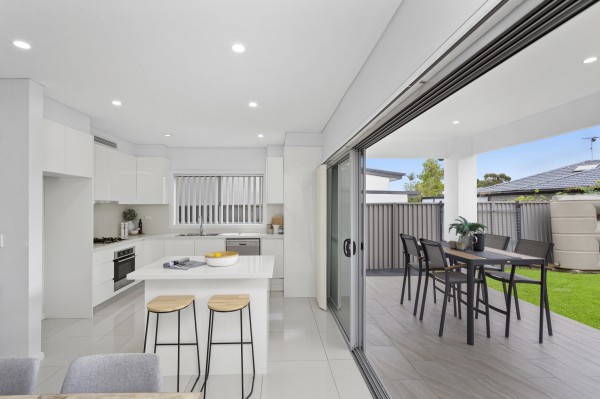 * Modern gas kitchen with thick stone bench tops