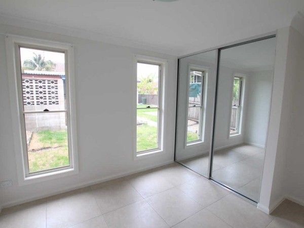 + Two bedrooms with tiled floors with mirrored built-ins to both