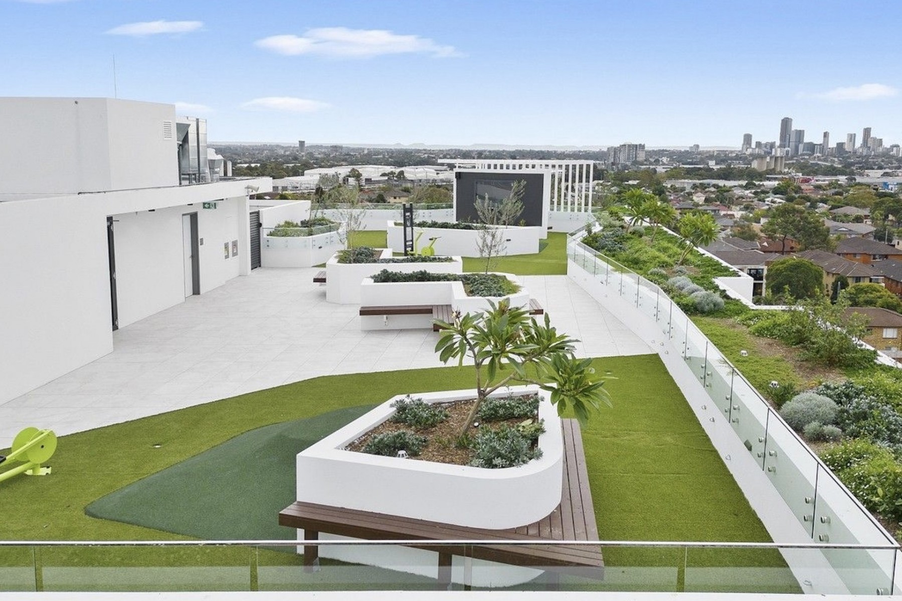 * Impressive communal rooftop garden with BBQ areas with district views