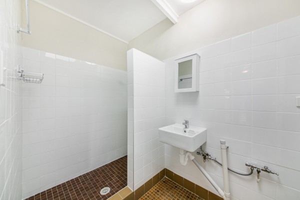 + Spotless bathroom with new wall tiles and shaving cabinet. Laundry space located inside bathroom area.