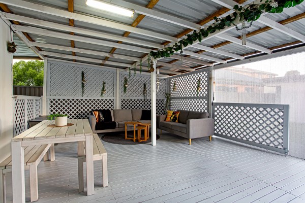 * Huge undercover entertainers' deck, enormous storage shed