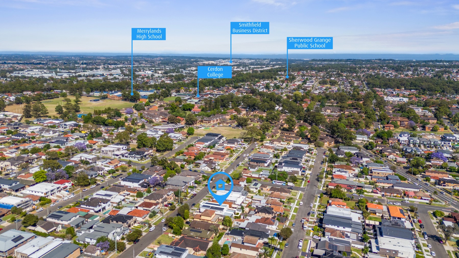 Beautifully presented across two stylish levels, here is an outstanding family home that is ready for immediate comfortable living in a great location within easy walk to transport, school and Merrylands Park. Boasting ducted air-conditioning, high ceilings and lovely tiled flooring throughout the living areas, the residence enjoys a functional floorplan with a downstairs bedroom and bathroom, plus four upstairs bedrooms with two bathrooms, perfect for supporting a home office or visiting guests and relatives. The generous living area has a custom fireplace opening to a big alfresco entertaining area overlooking your north-facing landscaped gardens, just perfect for relaxing and those evening outdoor dinners. Features include a gas kitchen including dishwasher, island breakfast bar and walk-in pantry, premium fully tiled bathrooms, plus built-in robes in all bedrooms with the master inclusive of a walk-in robe, ensuite bathroom and private balcony. Just 150 metres to the bus stop, 400 metres to school, 600 metres to Merrylands Park with easy access to Merrylands Central shopping and train station, and the fast T-Way bus for Parramatta and Liverpool gives this home and location plenty of appeal.