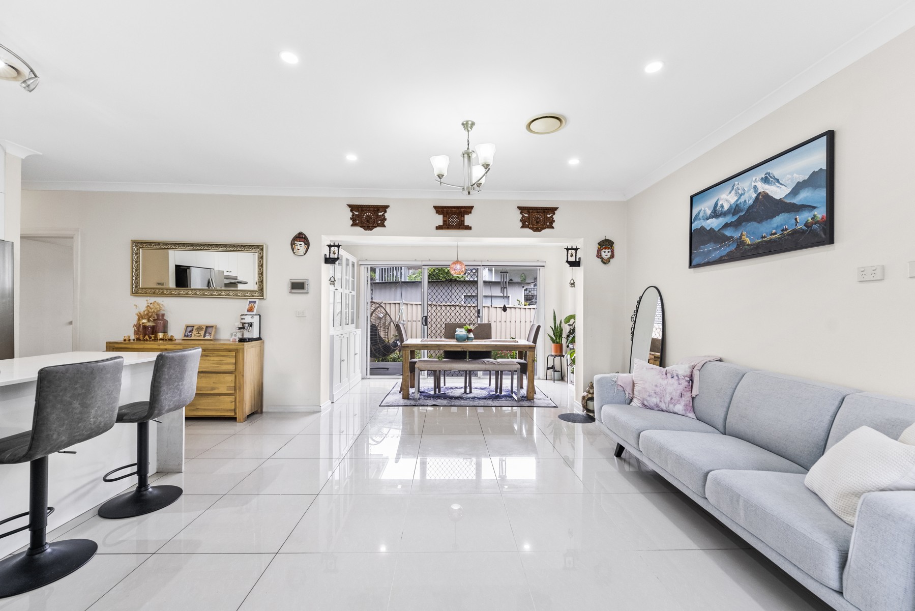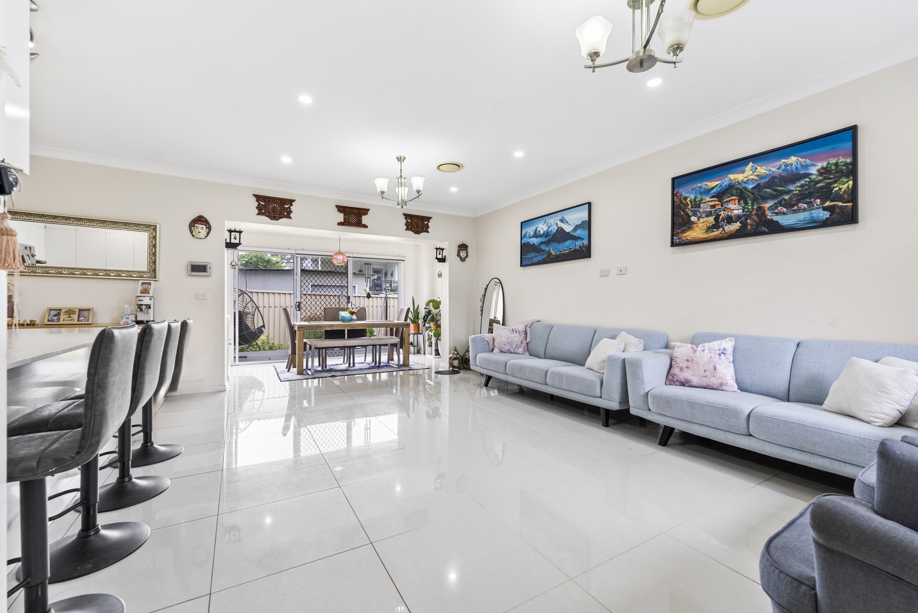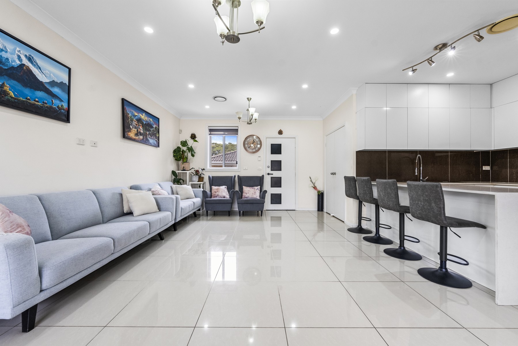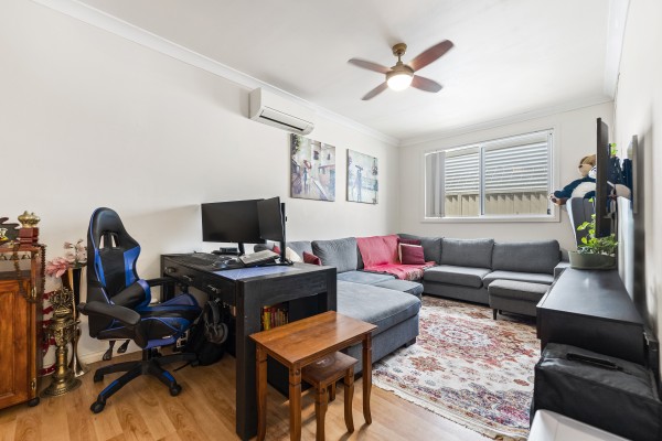 Set in a modern complex in a resident only cul-de-sac, here is a spacious, single-level brick villa which is ready for immediate living. Boasting quality easy-care flooring, high ceilings and ducted air-conditioning, this exceptional residence delivers optimal comfort across a spacious, low-maintenance design with a large, light-filled, open plan layout with an extra air-conditioned rumpus, study or home office space off the lock-up garage. Featuring a generous contemporary kitchen with stainless steel appliances including dishwasher and stone splashbacks, internal laundry, fully tiled main bathroom, plus built-in robes and ceiling fans in each bedroom with the master inclusive of a private ensuite bathroom, there is nothing more needed. The alfresco rear deck is the ideal space to enjoy the outdoors in a private courtyard with a convenient garden shed. Walking and bike paths are at the end of the street, just 150 metres to Manu Reserve, 550 metres to school and 850 metres walk to Hilltop shopping and restaurants with easy access to Merrylands, Parramatta and the M4 motorway.