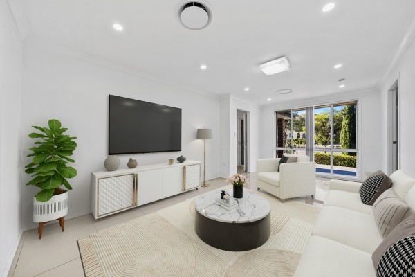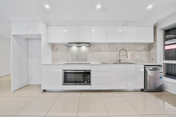 * Large modern kitchen with stone benchtop, dishwasher & 900mm oven and cooktop