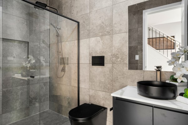 -3 sleek bathrooms with premium fixtures and designer tiling
