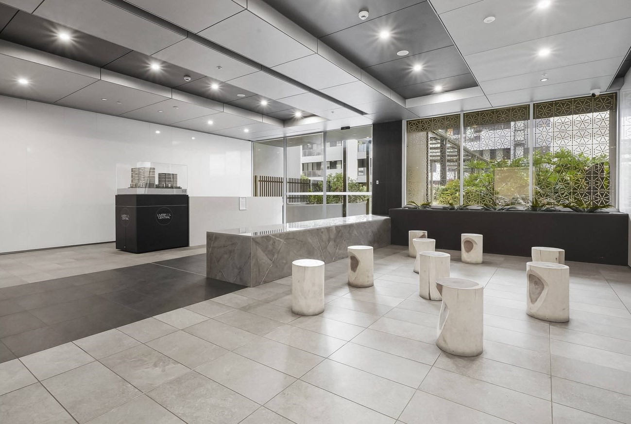 Introducing this exquisite two-bedroom apartment, located in the prestigious Liverpool Central development in the heart of the CBD. This highly secured complex boasts a resort-styled foyer and inviting outdoor common areas, perfect for social gatherings or peaceful relaxation. Situated on the 6th floor, this apartment features high ceilings that create a spacious ambiance, with downlights and timber flooring throughout the lounge room.