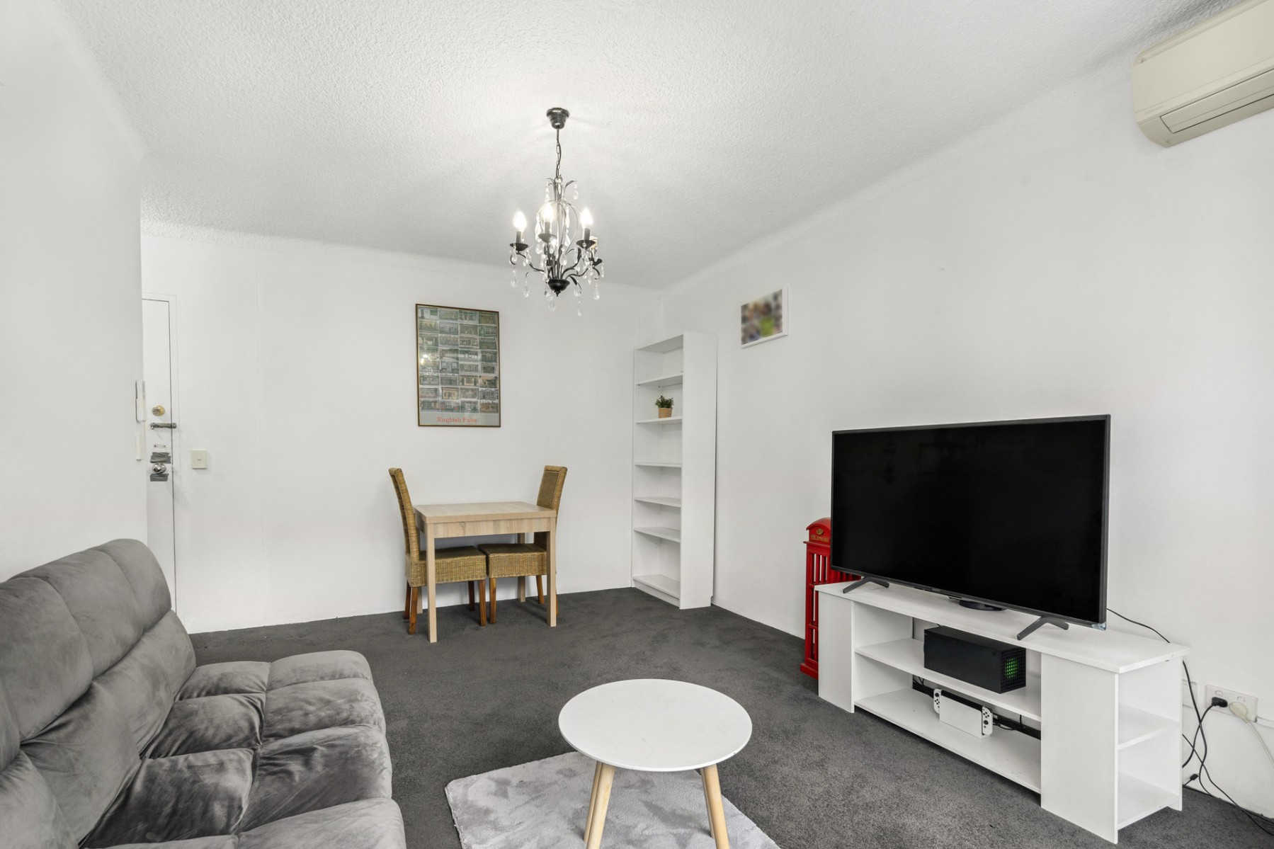 - Combined living and dining room with air conditioning
