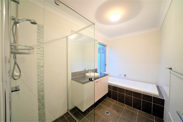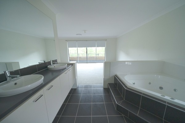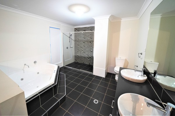 spa bath, extra large shower, his/her basins & a large walk in robe