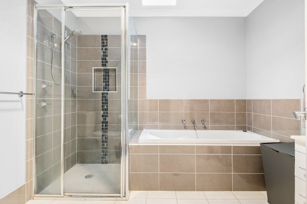 * Modern main bathroom with separate bath, shower & toilet