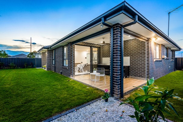 ~ Alfresco with Outdoor kitchen, Ceiling fan & Motorised Zip tracks Blinds.