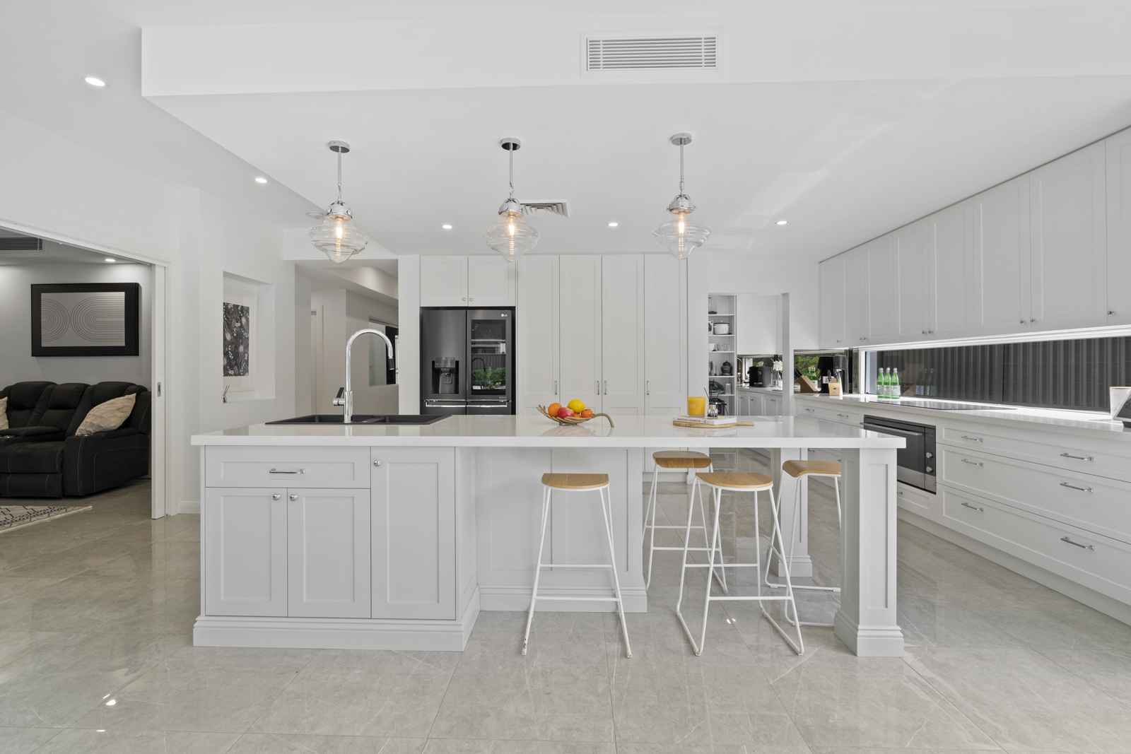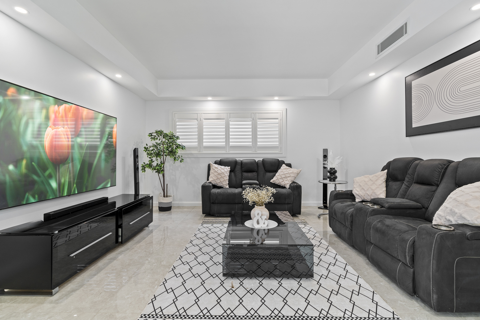 The ground floor features a dedicated home office or guest suite, a spacious theatre room for immersive movie nights, and multiple living zones offering flexibility for every family member. At the heart of the home, the gourmet kitchen includes a butler's pantry and flows seamlessly into the dining, rumpus, and alfresco areas-perfect for hosting family and friends in style.