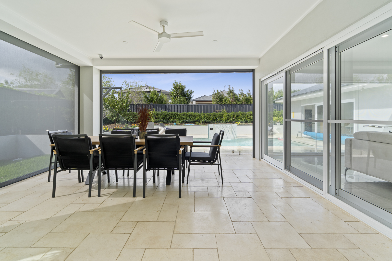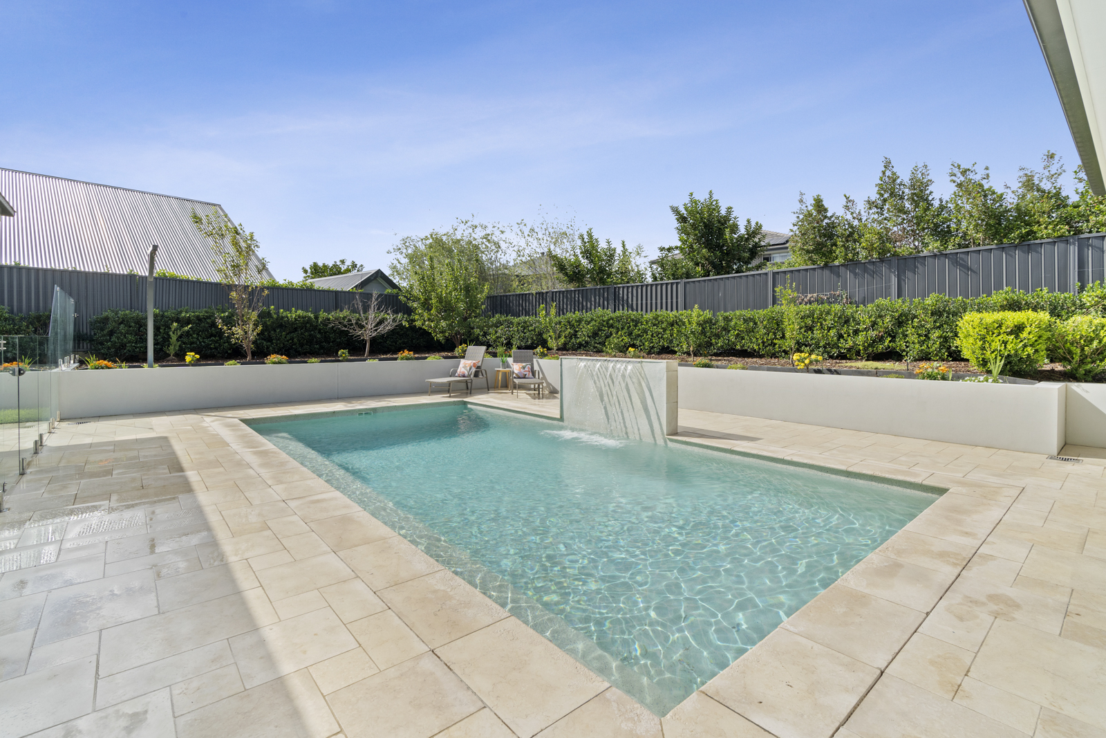 Step outside to a beautifully landscaped backyard complete with an alfresco entertaining area, sparkling in-ground pool, and a stylish pool house/ cabana your own private resort at home.