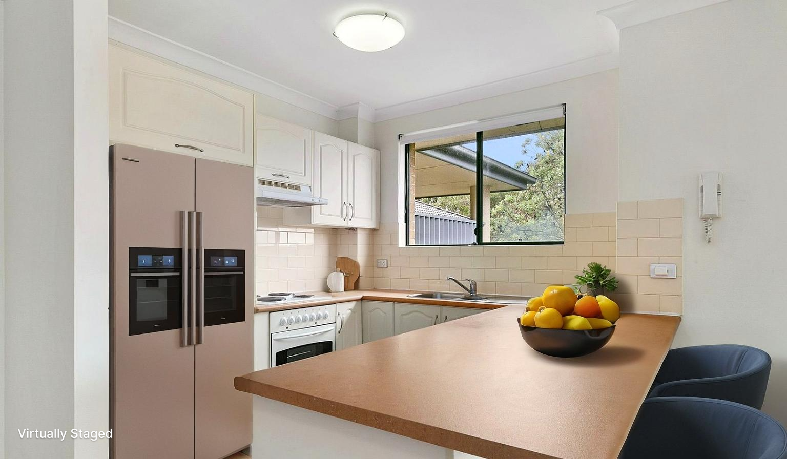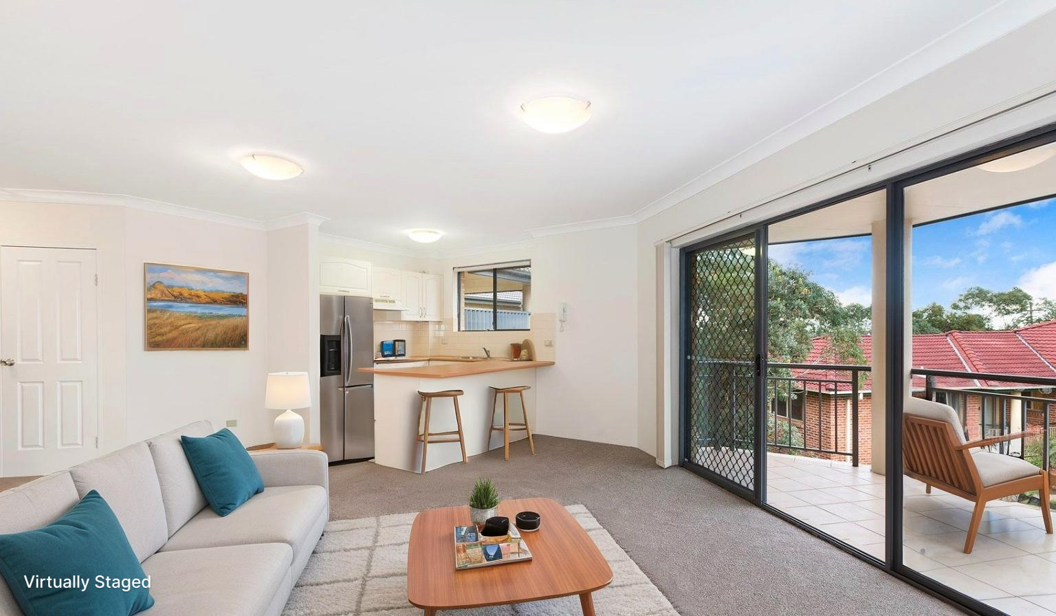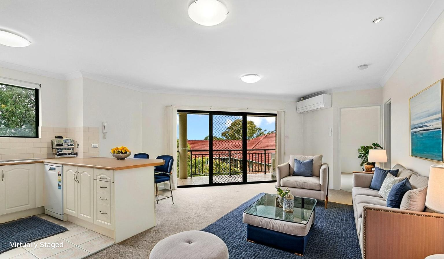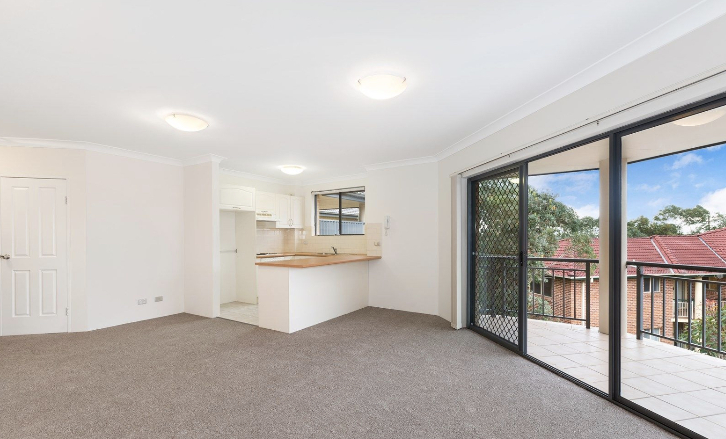 * The apartment has been freshly painted throughout, and new carpet has been installed. A linen cupboard provides additional storage space