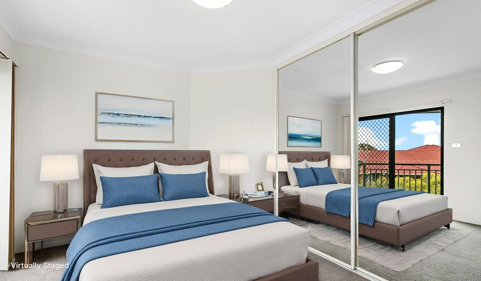 * The generously sized bedroom is filled with natural light and includes a mirrored built-in wardrobe and high ceilings