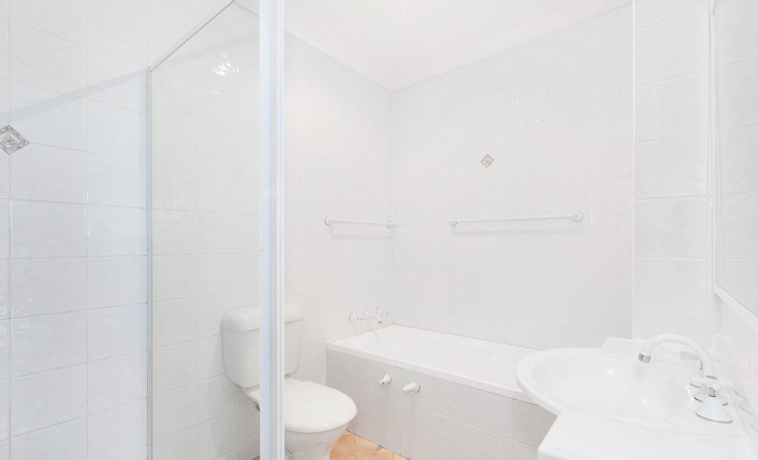 * The bathroom is well-appointed with a separate bath and shower, and there is an internal laundry