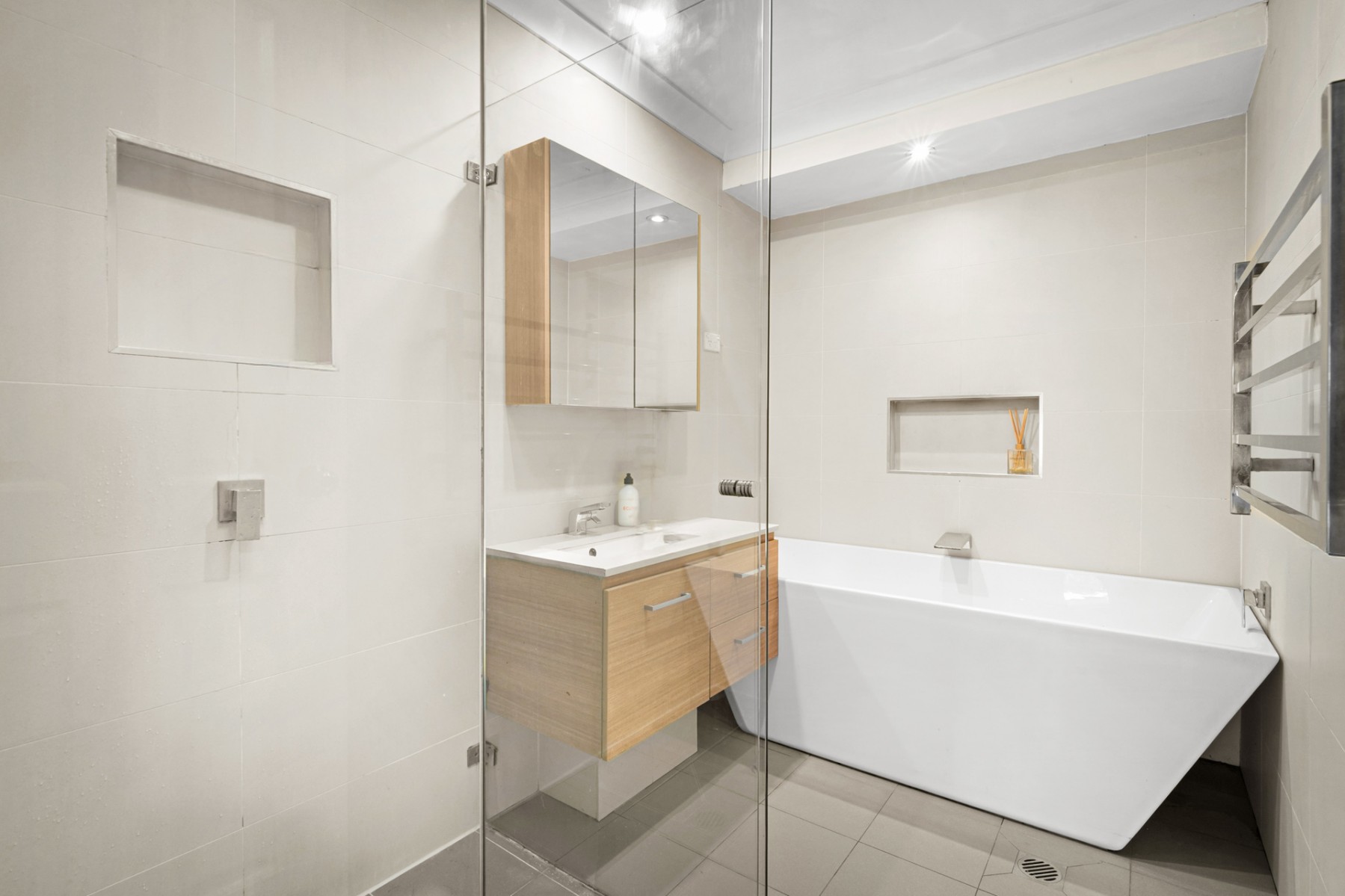 - Renovated bathroom with freestanding bath tub, seperate shower and floor to ceiling tiles