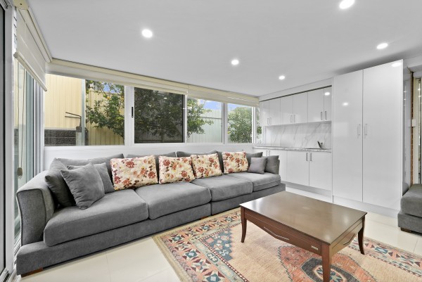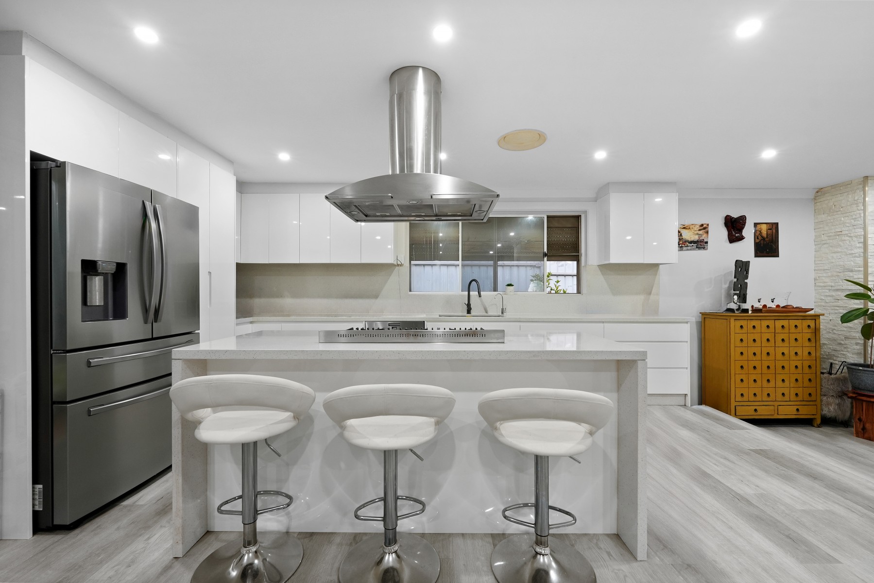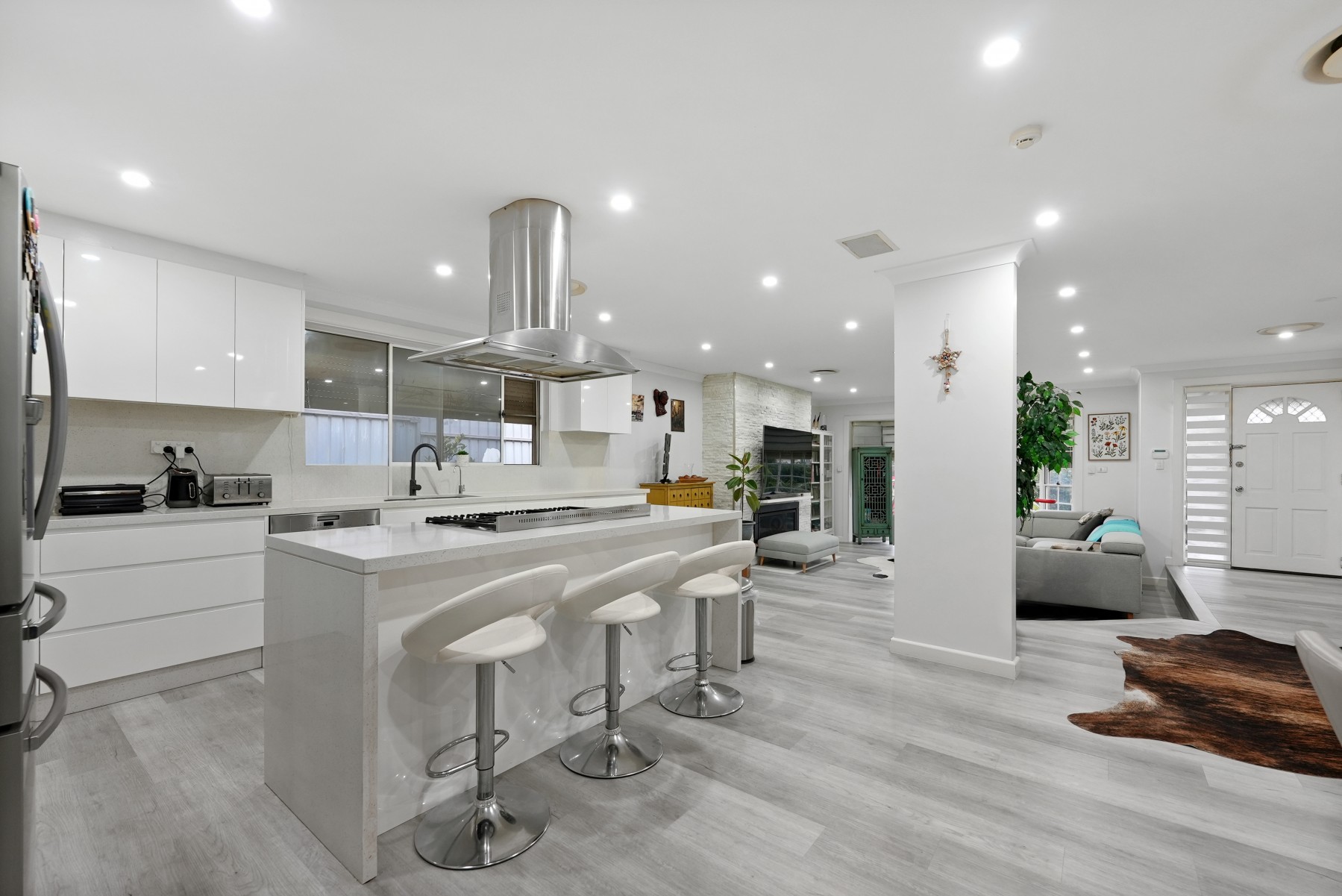 Set on a 562.8 sqm north facing corner position, this stunning four-bedroom family home delivers all the contemporary style and comfort you need for supreme modern living. Completed with premium easy-care flooring, energy efficient LED lighting and ducted air-conditioning, this residence is filled with value extras to guarantee a comfortable lifestyle. The residence boasts separate lounge and dining spaces, plus a designer kitchen with island breakfast bar and large gas cooker with oven, stainless steel range hood and dishwasher, ideal for family relaxation or entertaining with friends. Additional features include premium bathrooms, built-in robes in three bedrooms, two with private ensuite bathrooms, plus a fourth bedroom which doubles as a guest retreat with its own kitchenette. When you include under-cover parking for three cars and ample additional off-street parking, a private yard, as well as incredible under home storage and working spaces, this complete residence will easily support a home-based business or handyman. With the bus stop across the road, you are just steps to the parklands on Greystanes Sportsground, 300 metres to school with easy access to shopping, Cumberland golf course and everything you need in the local area.