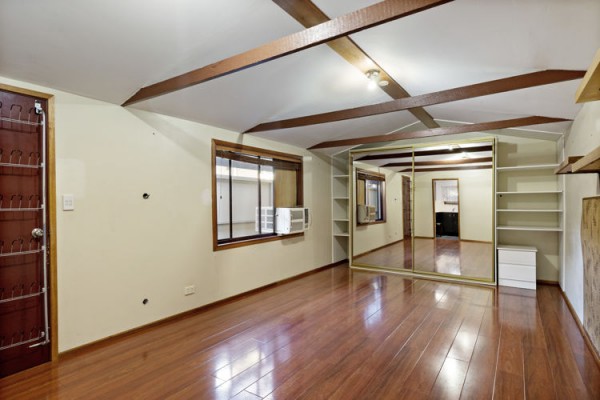 * Spacious combined living and sleeping area with air conditioning and a large built in wardrobe and shelving