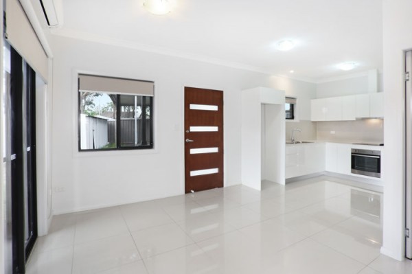 * Open plan tiled living area with split system air conditioning