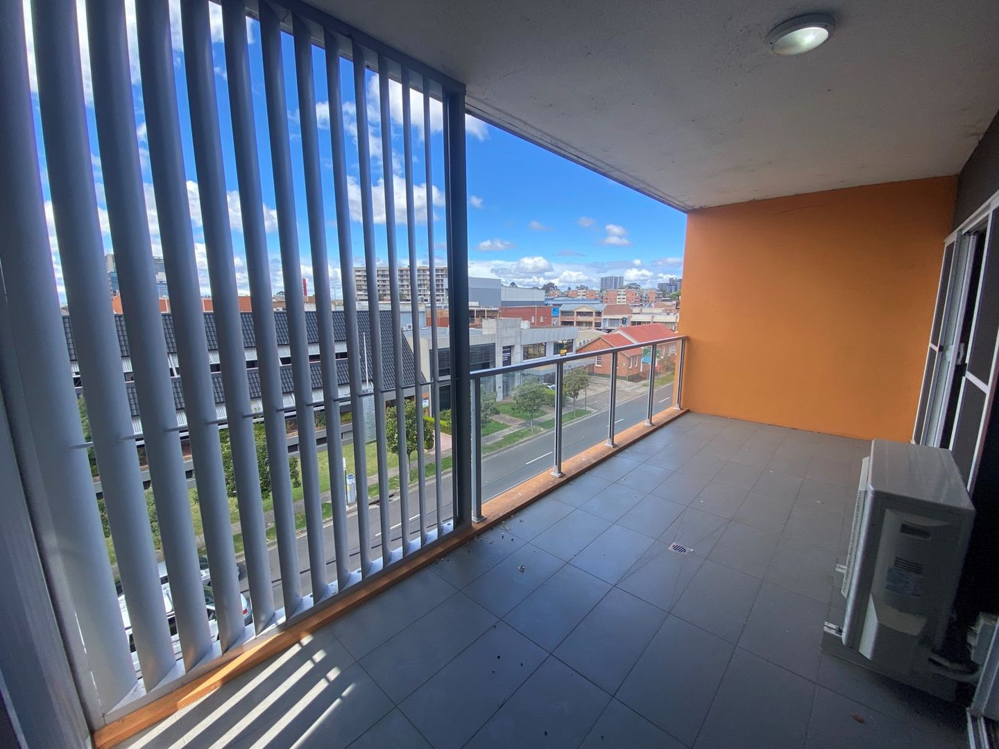 - Tiled open plan living area with split system air conditioning and access to large balcony