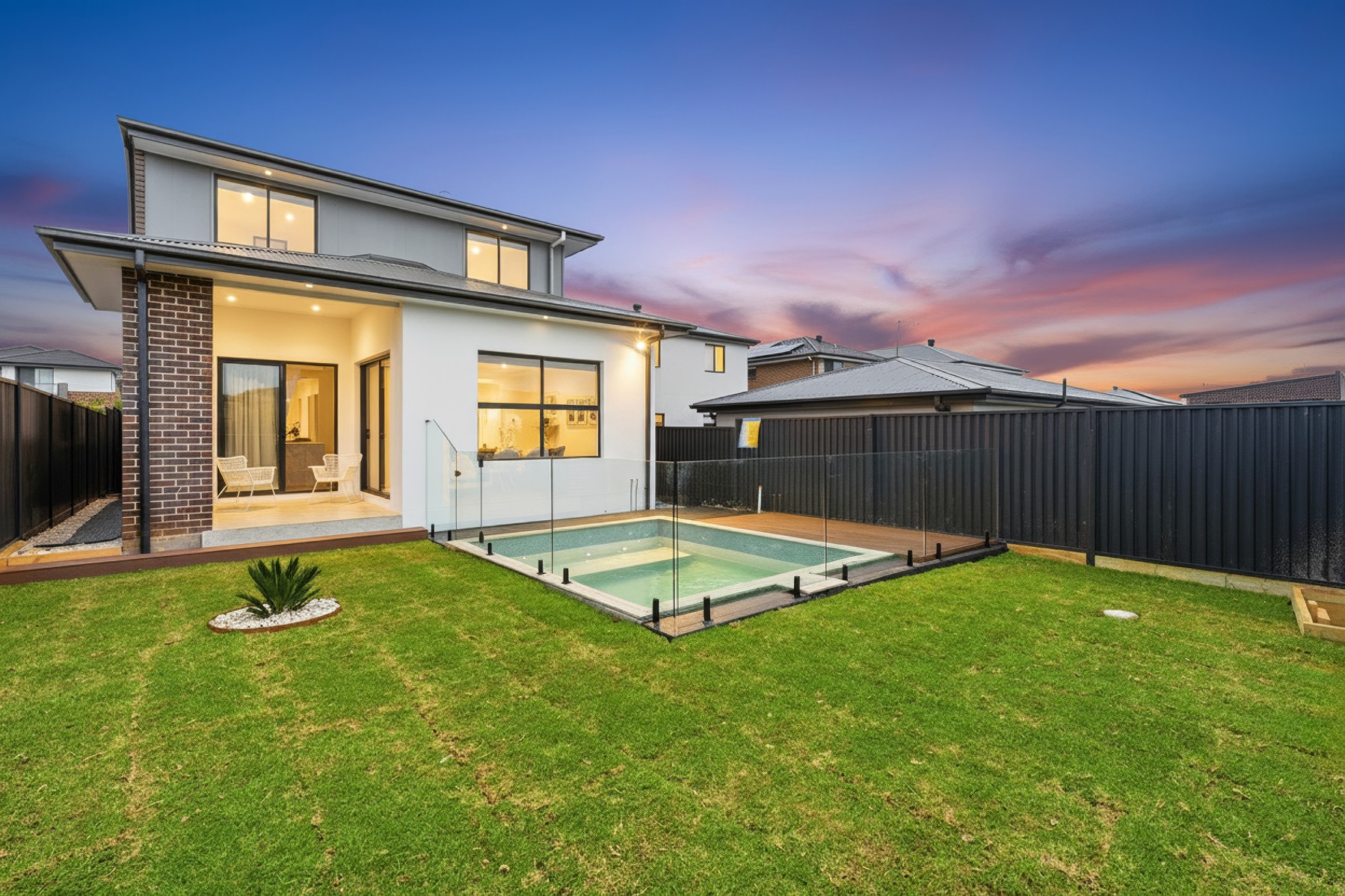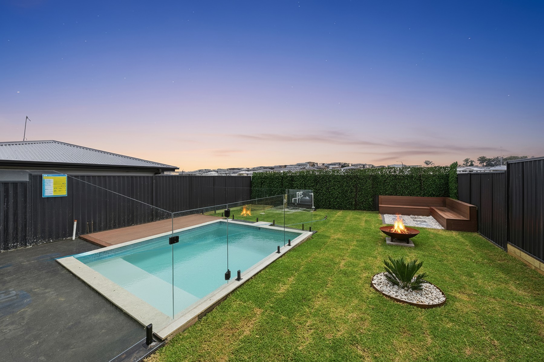 Sparkling inground swimming pool with frameless glass fencing