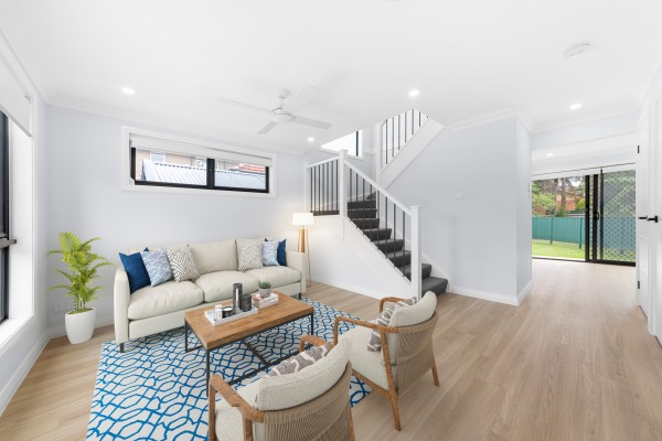 + Hybrid-timber flooring downstairs and carpet upstairs