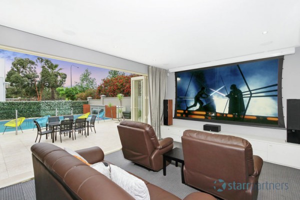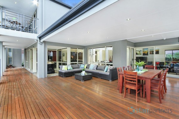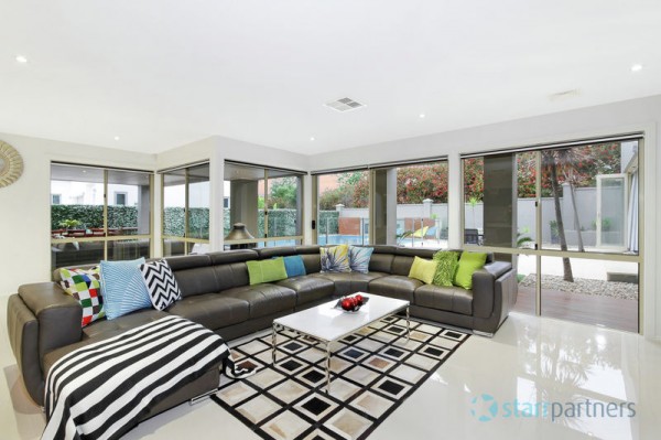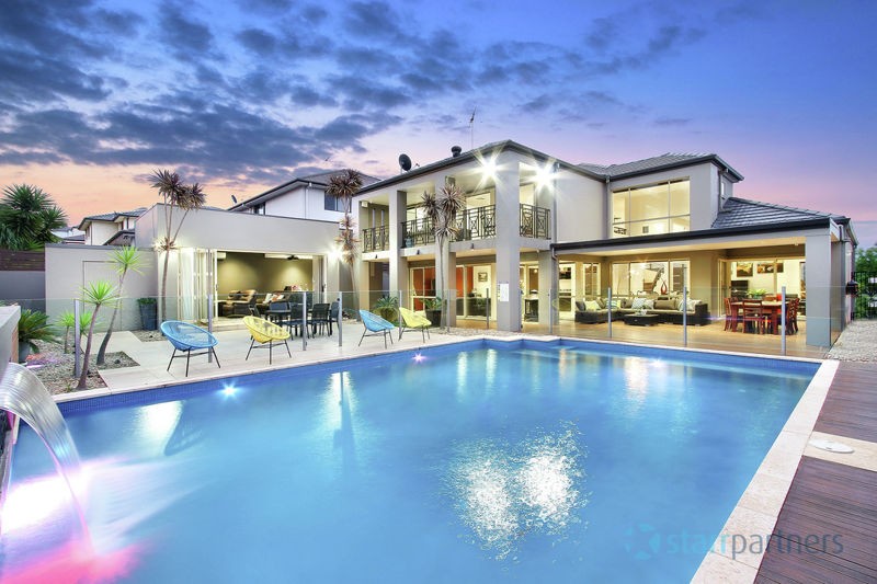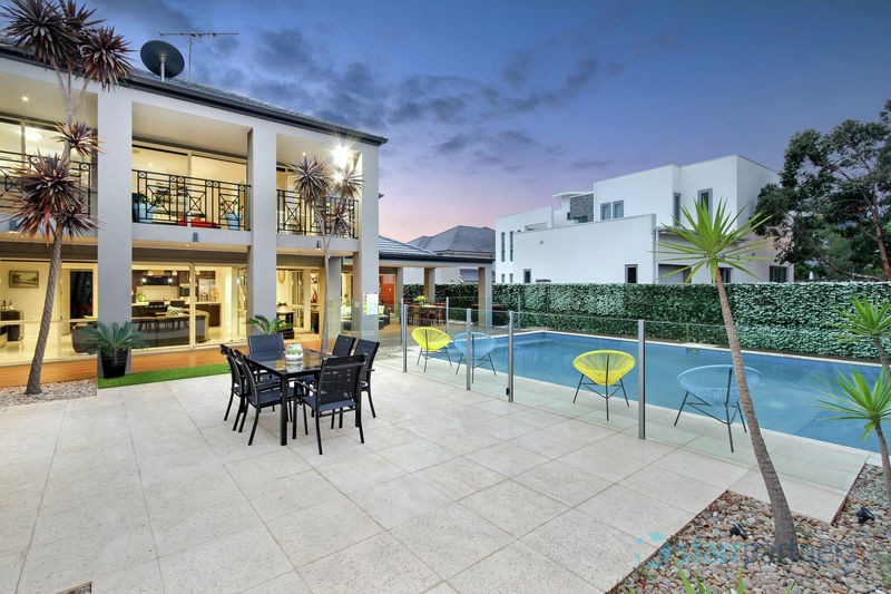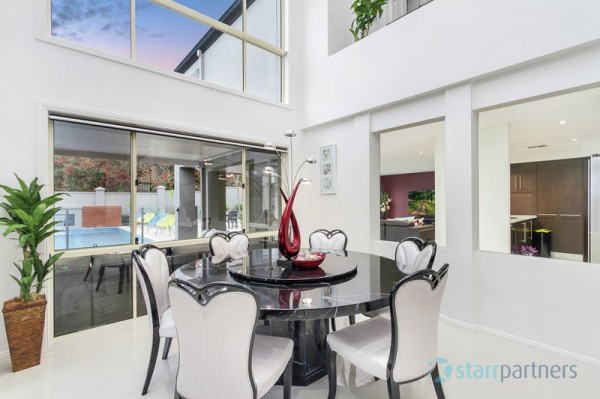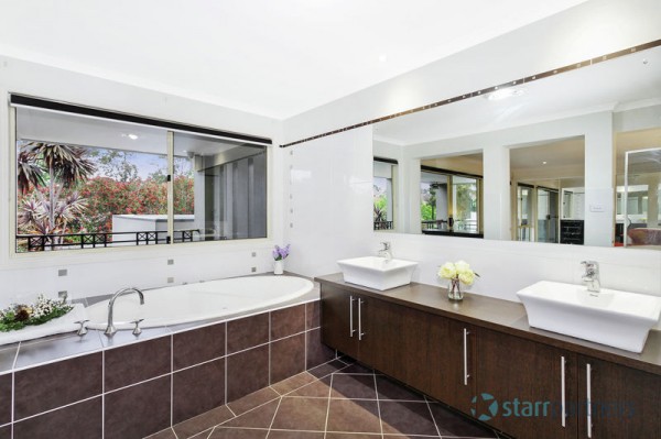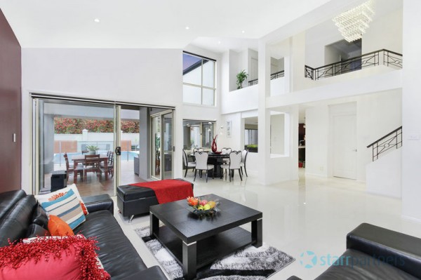 Immaculate stunning presentation through the entire home & stylish neutral DESIGNER DECOR, DAZZLING CHANDELIERS AT THE FOYER, large polished porcelain tiles. 5 bedrooms, study, large en-suite & spa in master with wrap around balcony, all other rooms have built-ins, expansive high ceilings in main lounge & dinning plus informal living adjoins the kitchen, stone bench-top and splash back, sophisticated ducted range hood, it also has a separate detached Media room/guest room with en-suite.