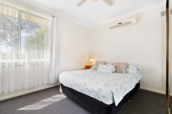Full scaled master bedroom with mirrored built ins wardrobes, split system air conditioning