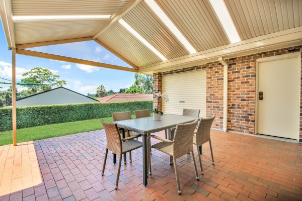 * Large paved entertaining area overlooking the beautifully manicured yard