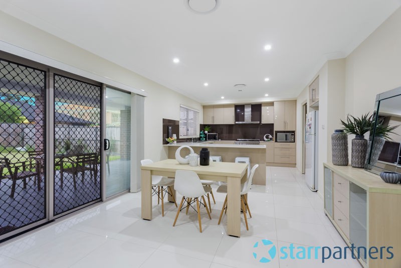 Starr Partners Bella Vista Presents - This elegant home with an effortless blend of modern features. Focusing on style, with light flowing in and outdoor living areas. Sparkling in presentation and offering an open plan design that compliments its elegant finishes. This contemporary & luxurious home in The Ponds is perfect for any large families and with an expansive floor plan that has plenty of room for the family to grow. Attention to detail throughout with no expense spared.