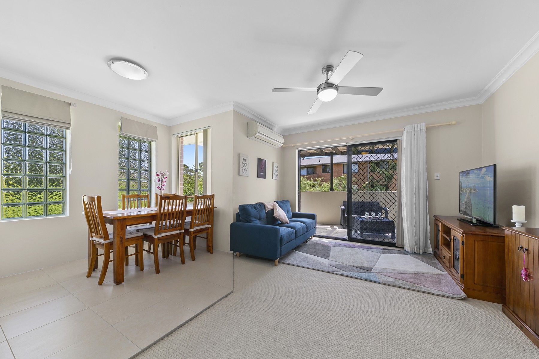 * Sun-filled air-conditioned living area